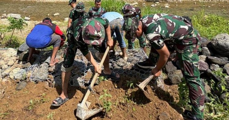 Pemasangan bronjong ini bagian vital dari upaya TMMD untuk memperkuat tebing sungai dan mencegah erosi yang sering mengancam pemukiman warga, terutama saat musim hujan.