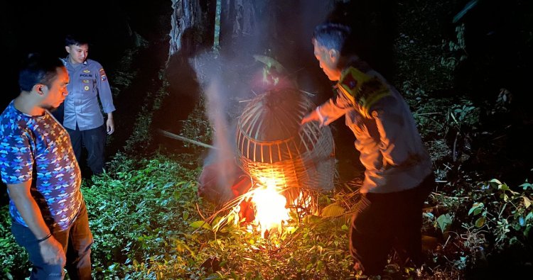 Selanjutnya, petugas langsung melakukan pembongkaran dan pembakaran sarana tersebut.