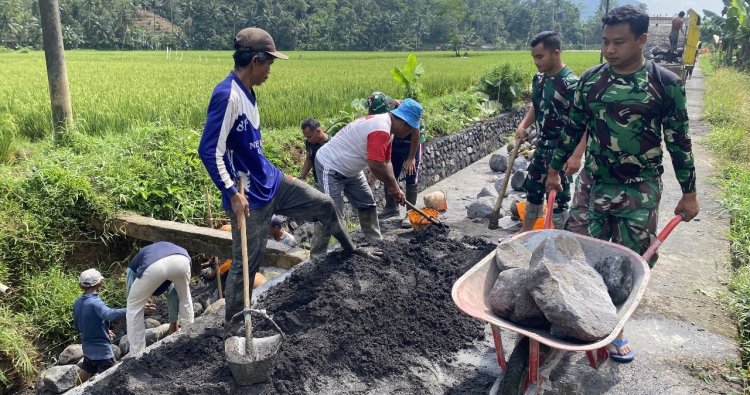 Gotong royong antara TNI dan masyarakat menjadi kunci percepatan pekerjaan. Warga turut serta membantu mengangkut material dan merapikan area sekitar pembangunan.